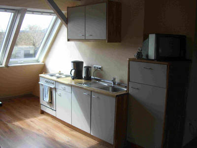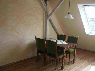 Sie erwartet ein großzügiges einzimmer Apartment im Dachgeschoss, für zwei Personen. Die Wohnecke kann zu einem zusätzlichen Doppelbett umgestaltet werden, um Platz für vier Personen zu schaffen.